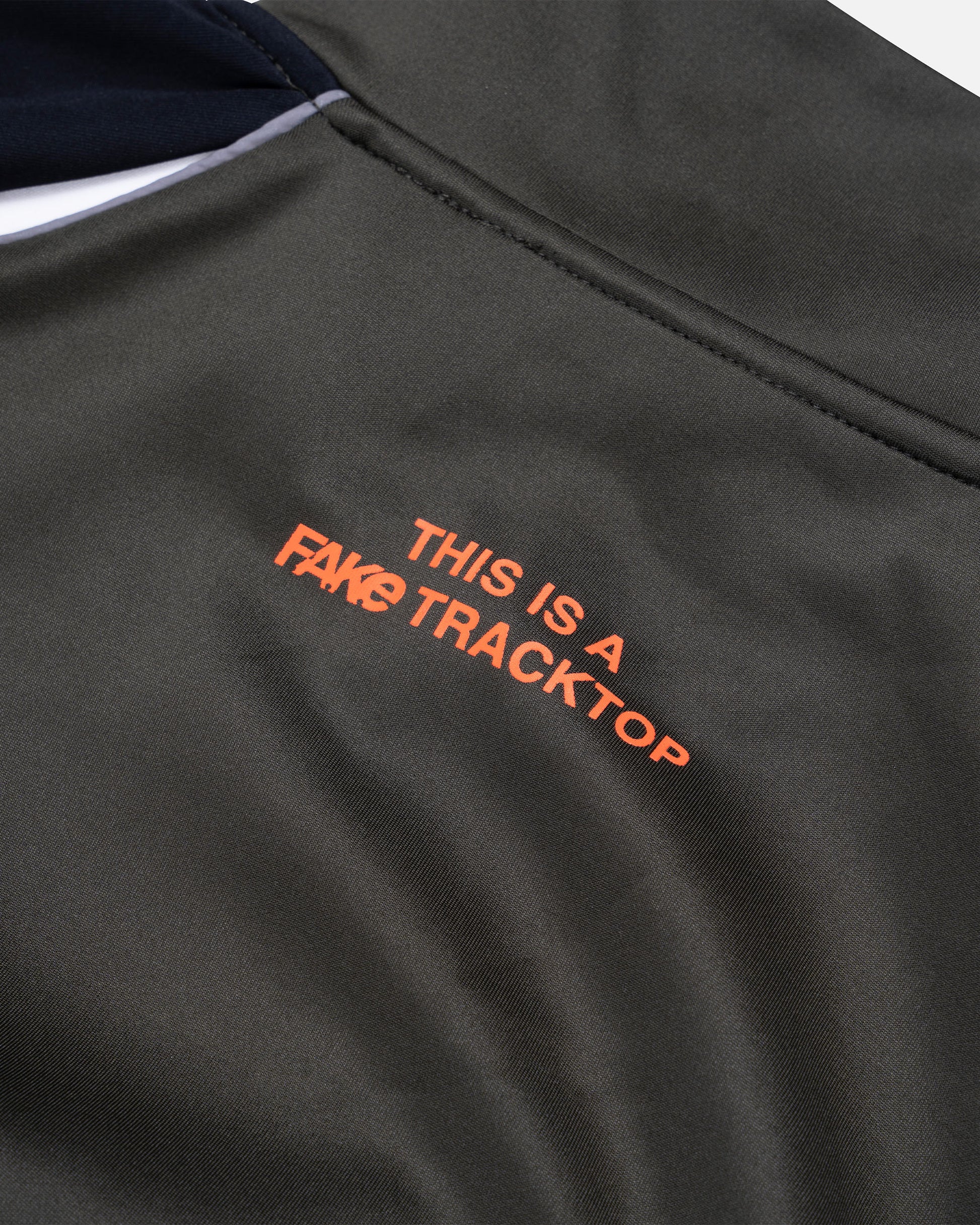 The FAKE Replica Track Top reimagines a classic silhouette with a sharper edge. Built from smooth, high-quality fabric, it carries a clean fit designed for movement and style. Subtle panel details and bold lines give it structure, while the small FAKE logo on the chest and the statement on the back remind you this piece is more than active wear, it’s a challenge to what’s real. Lightweight, versatile, and unmistakably FAKE.